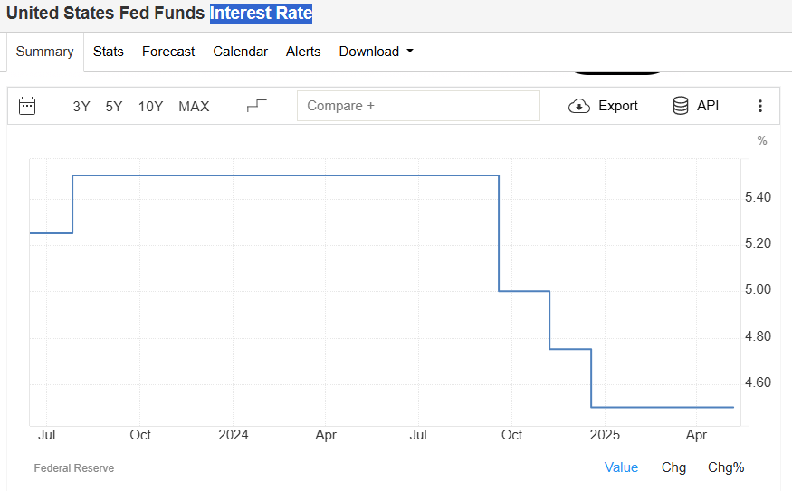 政策金利はピーク時より1.0%幅低い現状の年4.25~4.50%を維持する。